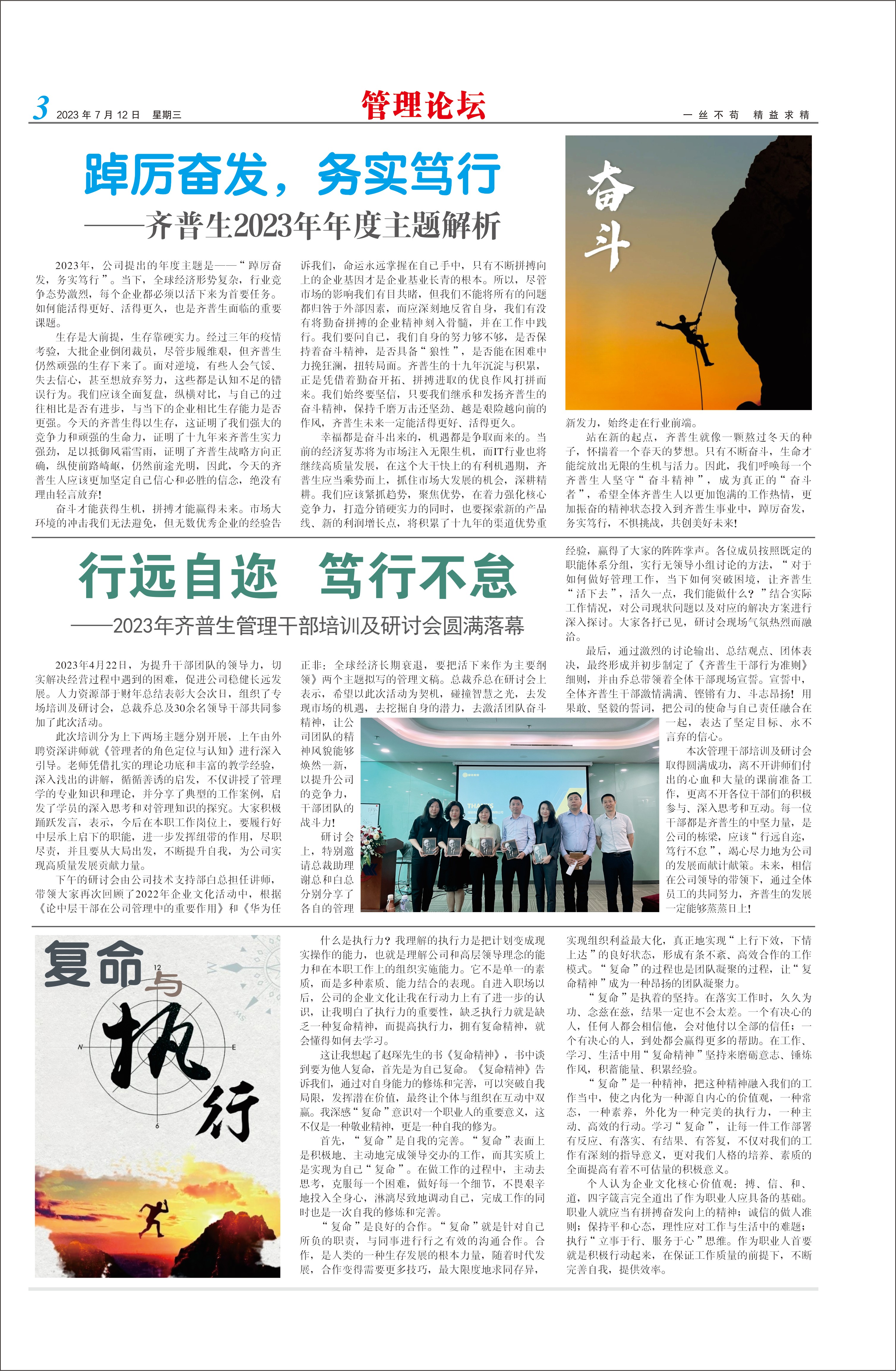 行遠自邇??篤行不怠 ——2023年齊普生管理干部培訓及研討會圓滿落幕